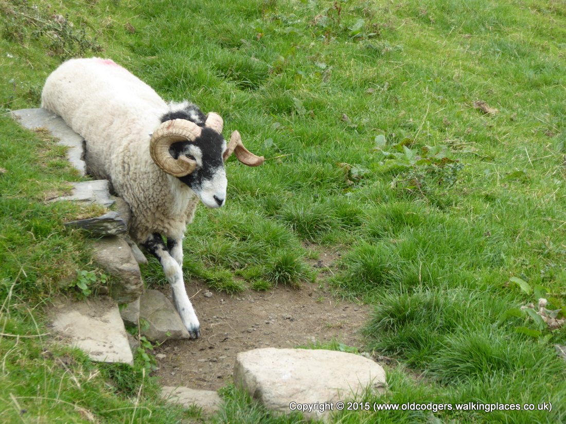 From Orrest Head we had been walking over grassy paths across fields, with a couple of sections of smooth road. From the Troutbeck valley we noticed a change to rougher stony or rocky tracks that were much harder on our feet. After a steep climb from Troutbeck we joined a fairly flat farm track where we passed another group of mountain bikers. As we approached High Skelghyll Farm we were amused by a sheep taking great delight in scratching against a rock.