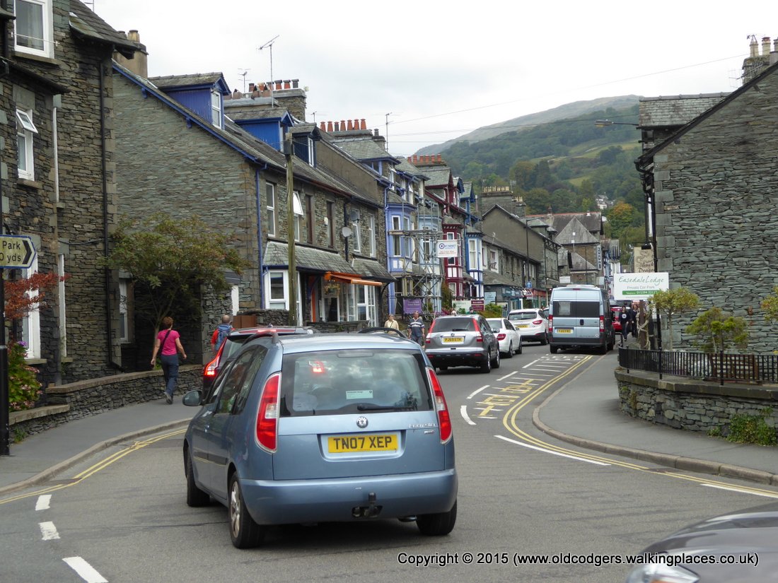 We made our way down into Ambleside. It wasn't as bad as Bowness/Windermere, but was tending that way with endless B&Bs, tourists and traffic jams. Our major disappointment was that both bakeries we passed were closed. We passed a beautiful church with an impressive steeple and a jay fossicking among the gravestones, then crossed the beautiful Miller's Bridge to leave the town.