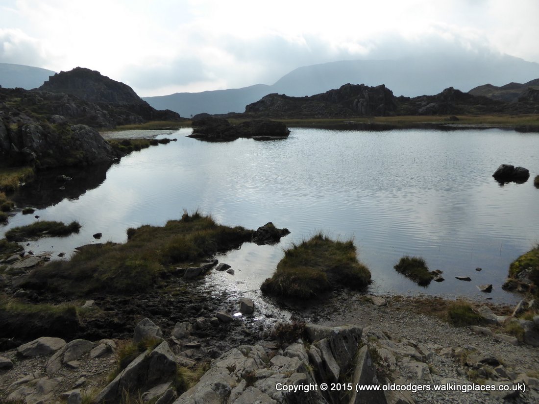 We shared the top of Haystacks with 30 other walkers. We descended to Innominate Tarn, passing more walkers on the way. Wainwright's final resting place was as beautiful as we remembered it. We followed the rocky path to Dub's quarry, avoiding the path down to Buttermere that lured us in 2010. The rocky descent to Honister slate mine was slow and painful – our feet were unhappy. We were not as unhappy as some members of a large walking party slogging up the hill at the end of a long walking day. We stopped at the mine for a cold drink.