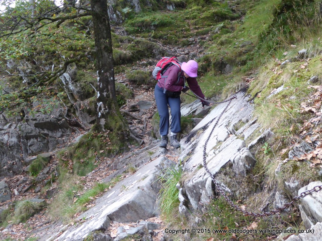 'Mary traverses rocky outcrop, Johnny's Wood'