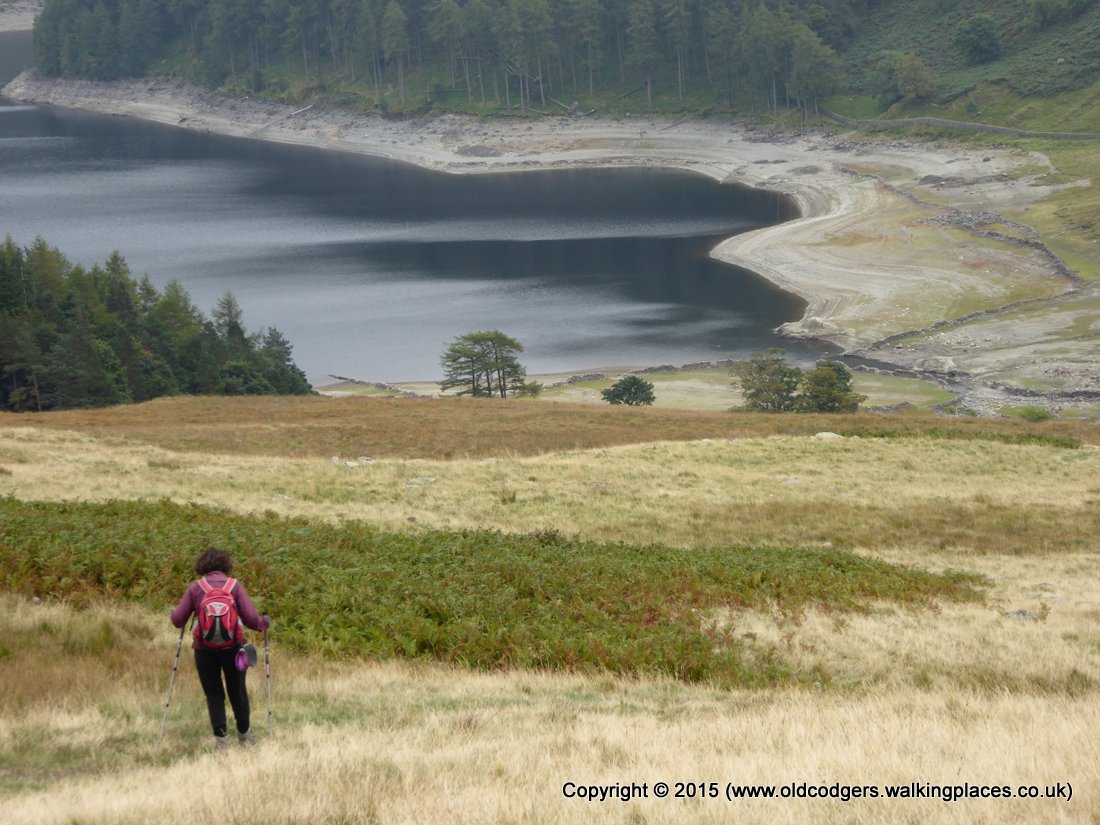 Part way down to Haweswater we caught up with the Leicester 10 who had stopped to regroup as some of the less agile lagged behind. Having passed them we rushed down the ridge to stay ahead of the fitter members of the party. That was tough on legs and knees. We had planned to stop for lunch near a pretty little waterfall on Randale Beck near the edge of Haweswater. When we arrived we found the Tassie two enjoying their lunch near the beck. We didn't want to disturb their peace, so headed off in search of another spot.