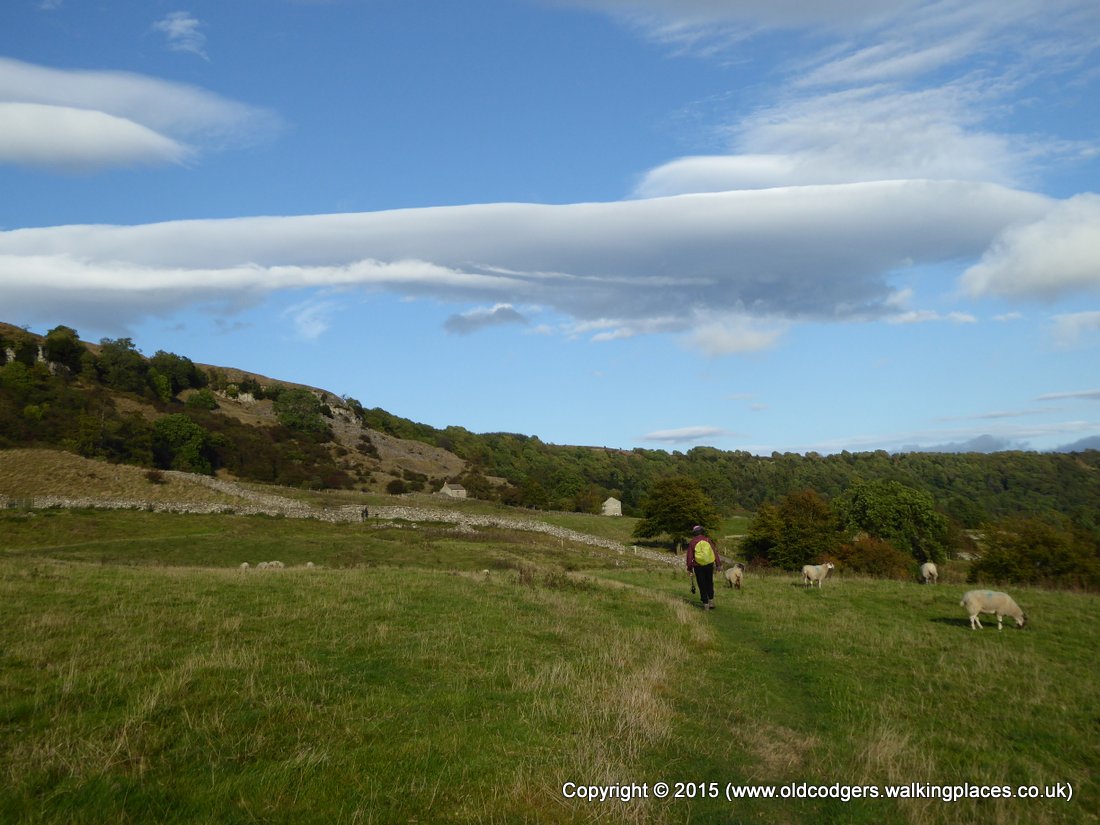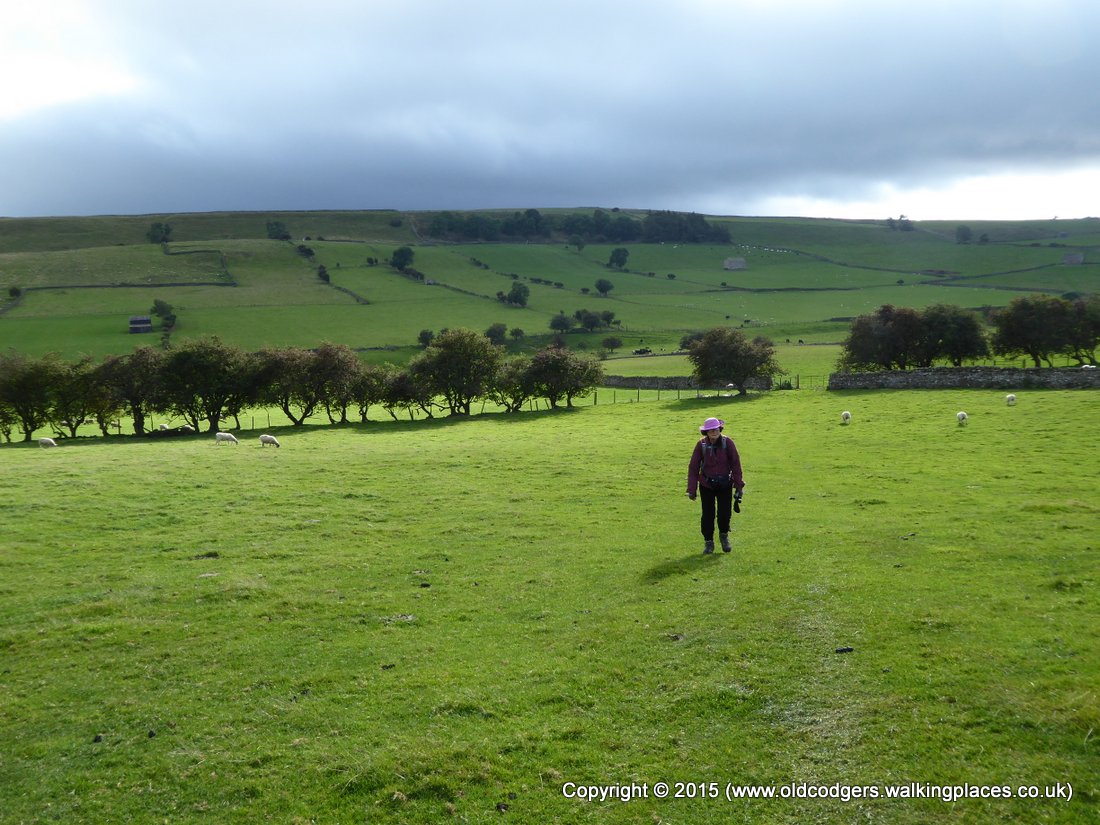 We had breakfast at 8 am. Graham's cooked breakfast included the best bacon of the walk. Mary just had toast. After another long chat with John and Joyce we set off at 9.20. It was another cool, grey morning, with mist hanging over the fell tops. We could just make out the top of Kisdon Hill through the gloom. Our walk along the road was disturbed by only a couple of cars. At a turnoff over the ridge to the south was a sign 'Askrigg 5' – we were very near the NoEW route we had taken a little over two weeks ago.